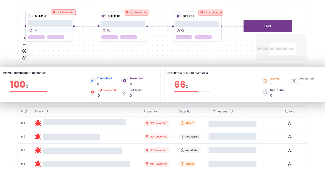 Access a centralized, enterprise-wide simulation report covering attack execution across endpoints, detection and prevention outcomes, and validation results. Use these insights to improve detection coverage, response workflows, and overall security posture.